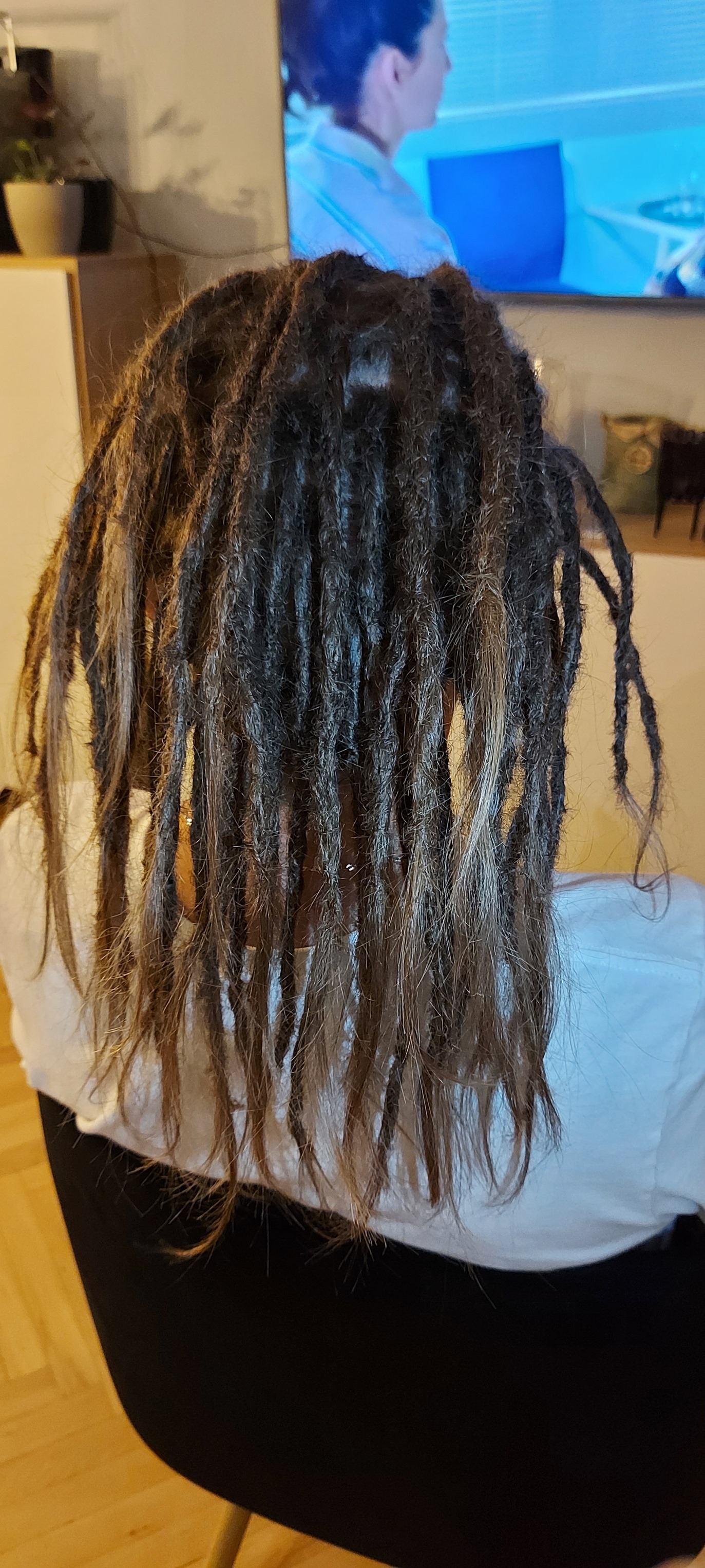 Podstawowy to oczywiście długość włosów. Wiadomo, nie wszystkie włosy są takiej samej długości, zwłaszcza gdy są bardzo długie. Przy głowie ich objętość jest znacznie większa, w porównaniu do włosów sięgających np. za łopatki. To z kolei wpływa na ich skracanie, ponieważ mniejsza objętość wymaga użycia większej długości, by zapewnić dredom równy, na całej ich długości, wygląd.
